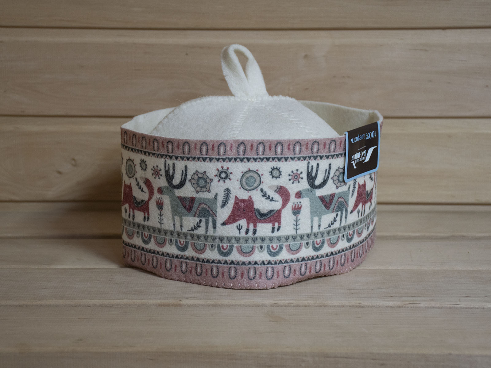 Шапка банная "Лисы-лоси", фетр белый (Б49284)