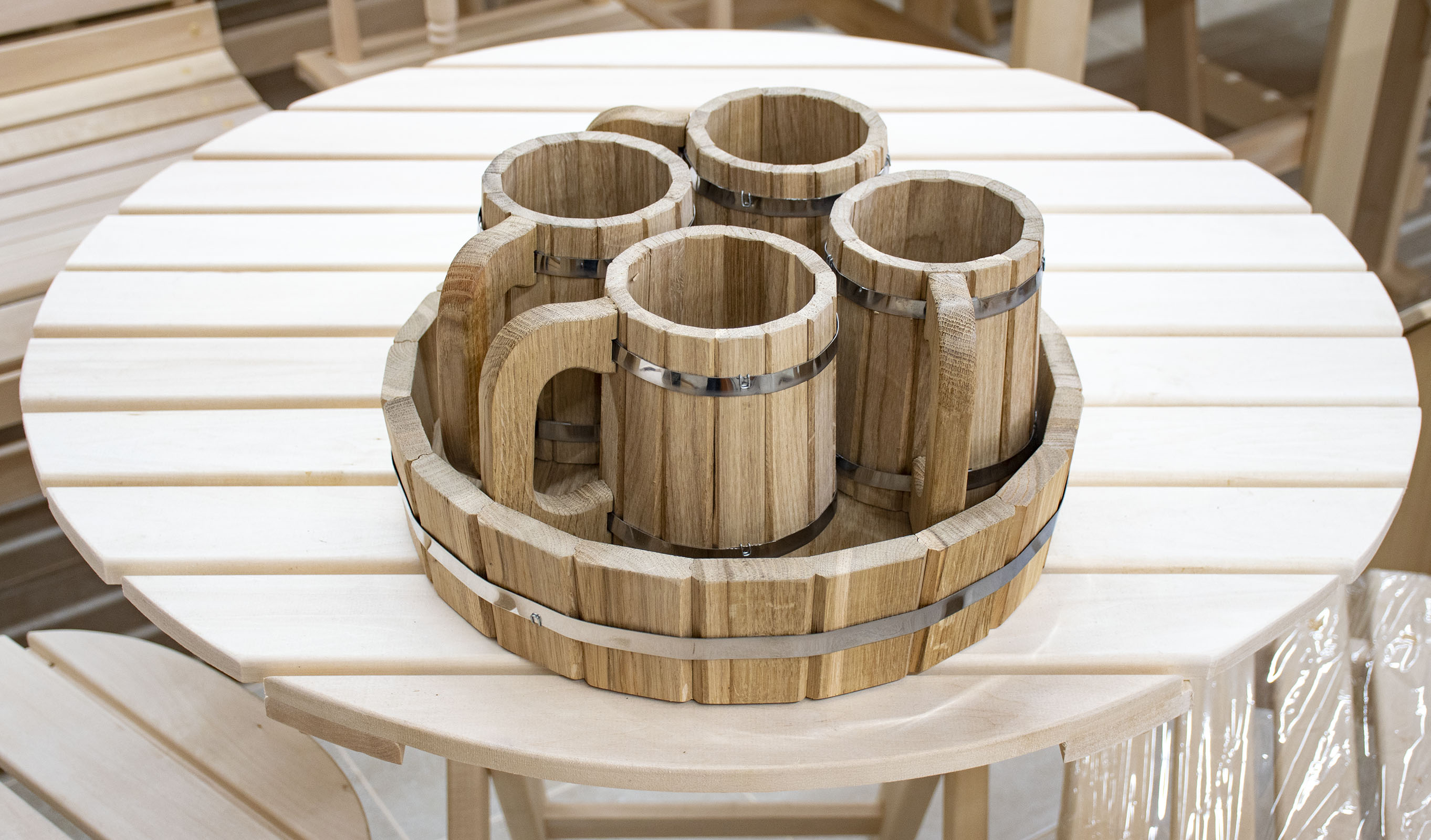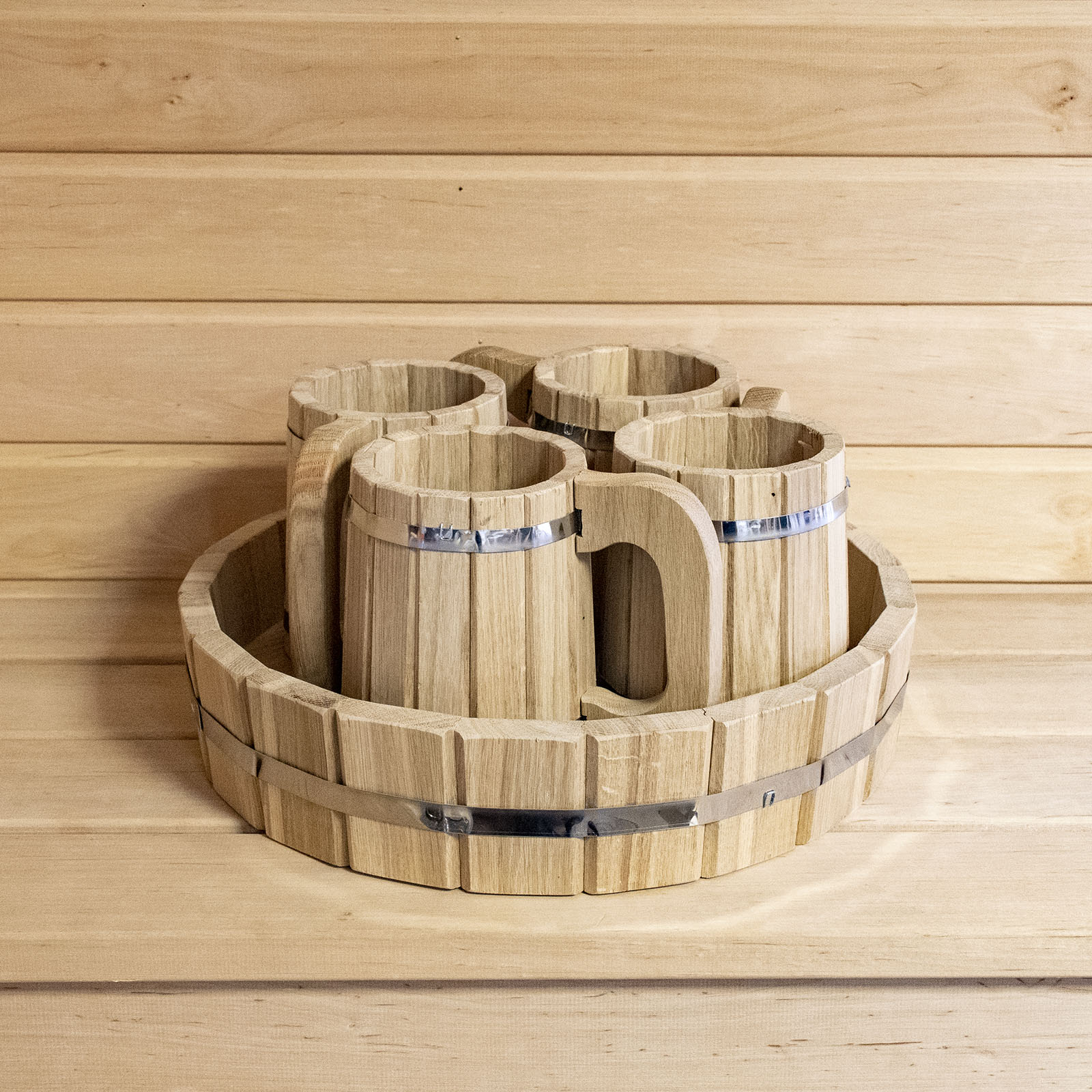 Набор кружек (поднос + 4 кружки) дуб ДК-4
