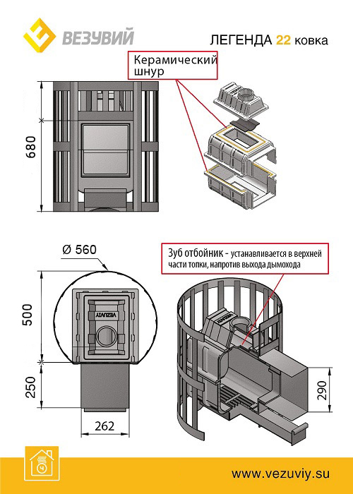 | Материал топки печи | из чугуна |