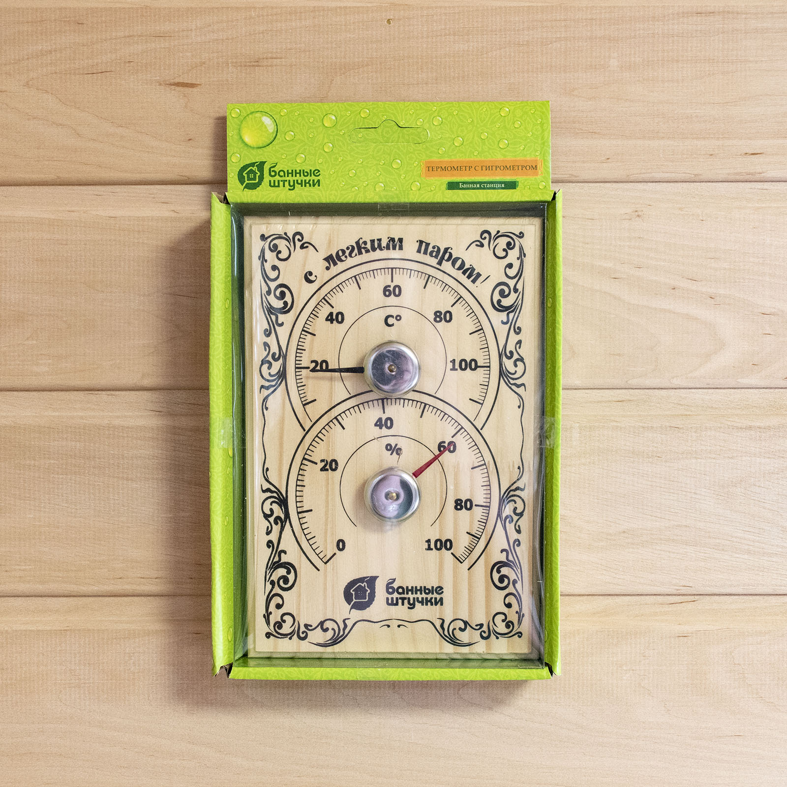 Термометр с гигрометром Банная станция для бани и сауны "Банные штучки" 18х12х2,5 см.